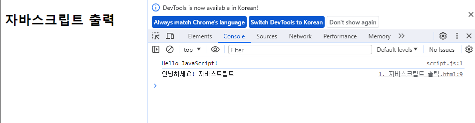 <title>자바스크립트 출력</title>